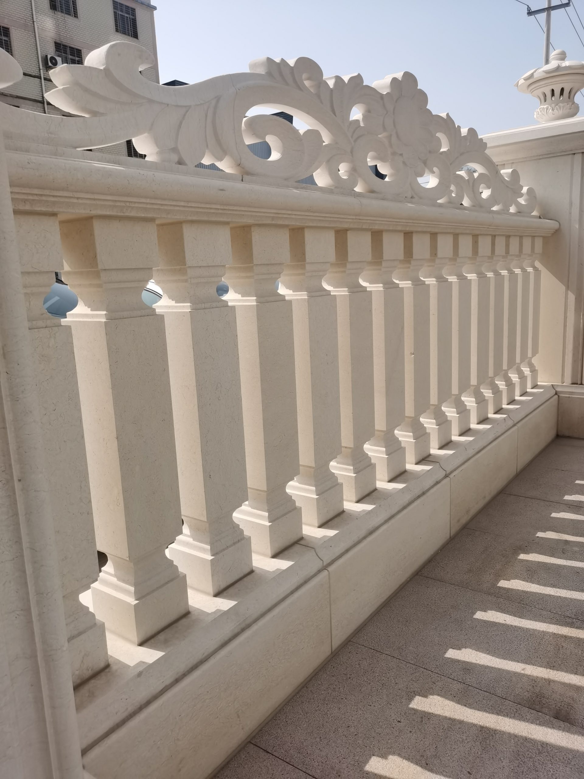 Decorative Railings: Square columns paired with lantern-shaped top decorations, exquisite hollow-carved patterns combine safety protection with artistic beauty -